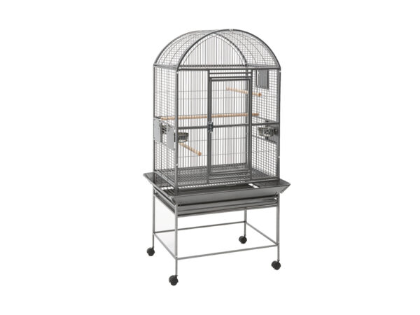 Клетка за папагали Canberra Bow е голяма и е екипирана 3 масивни дървени кацалки и 3 стоманени хранилки. Има също така механизъм за заключване и стойка на колелца.