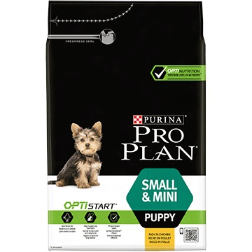 PURINA® Pro Plan® Small & Mini Puppy с OPTISTART® и Коластра, богата на Пиле суха храна за малки кученца до 1 година е Пълноценна храна, която съдържа формула от специални хранителни съставки подходяща за кученца от дребни и мини породи. С добавената съставка Коластра, първото майчино мляко, OPTISTART® подсилва естествените защити на кучецата от дребни и мини породи, помагайки им да се борят с всекидневните предизвикателства и да изгграждат силна Имунна система, която да поддържа здравето им в дългосрочен план.